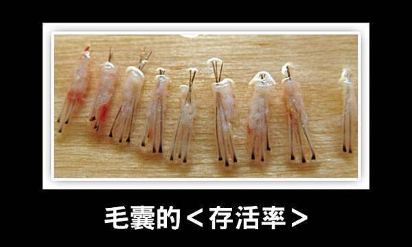 而植髮在臨床上還有一個最大的問題就是<存活率>,移植的毛囊並不保證一定會存活,因為造成掉髮的因素還是存在,比方說DHT或是其他各種造成掉髮的因素都還在我們體內運作,這些因子並沒有因為植髮而改變,反而是將低掉髮風險區域的毛囊移植到高風險掉髮區域,臨床上我們通常都是用後枕區的毛囊移植到前額髮髮際線,而很不幸地的目前醫學平均存活率大概只有七成左右,也就是說如果移植1000根頭髮在一年之後大概只剩700根存活,而此時此刻捐贈區的毛囊也不會再生了!